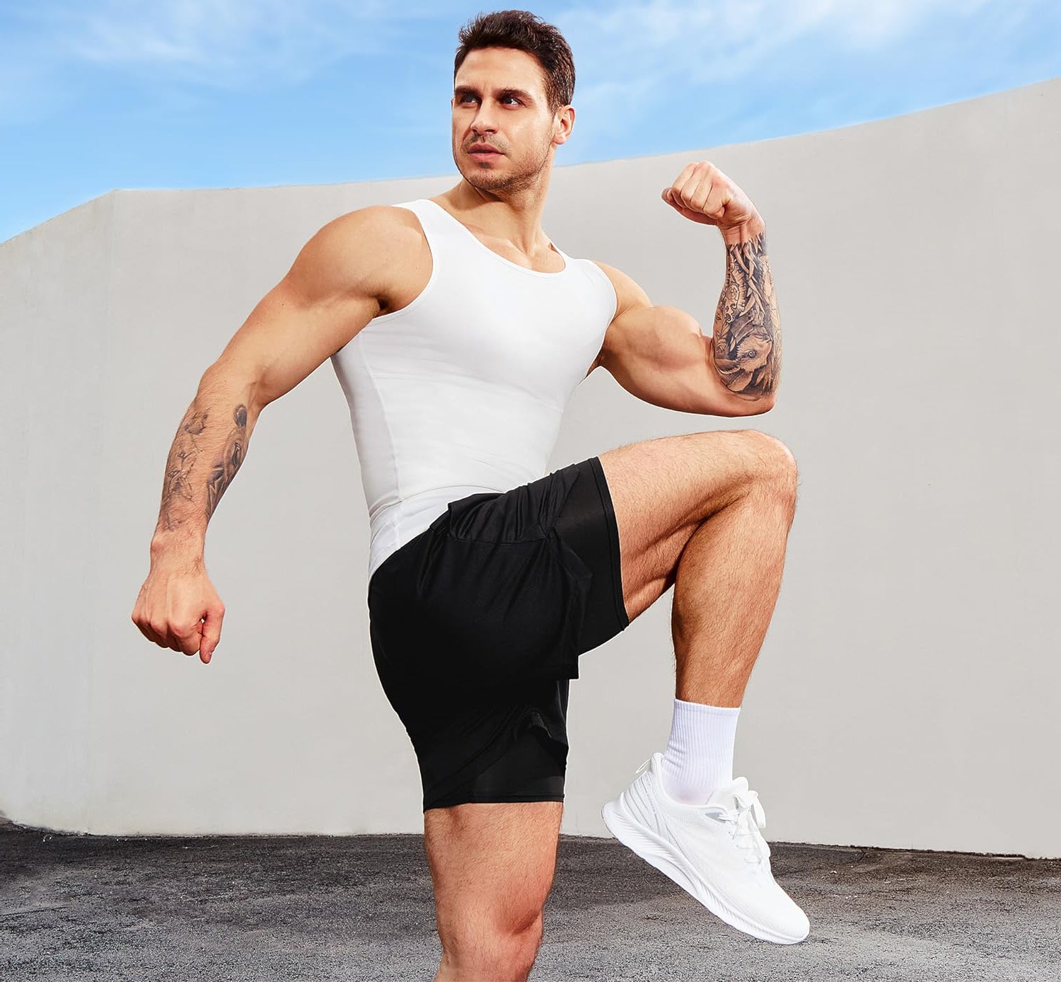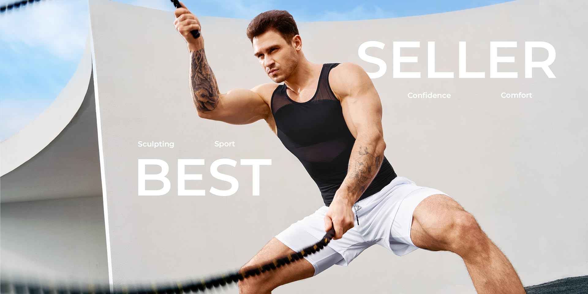 Mens Slimming Body Shaper Vest Shirt Abs Abdomen Slim