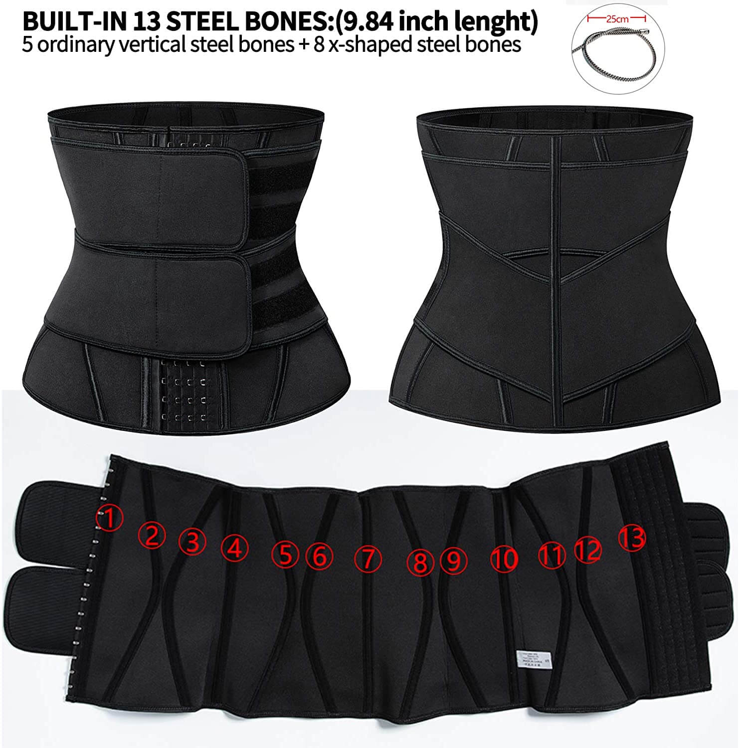 Different from other waist trimmer belt, our double straps waist trainer use X-SHAPE BONED design surround your waist to support. Flexible bones attach perfectly to your body.