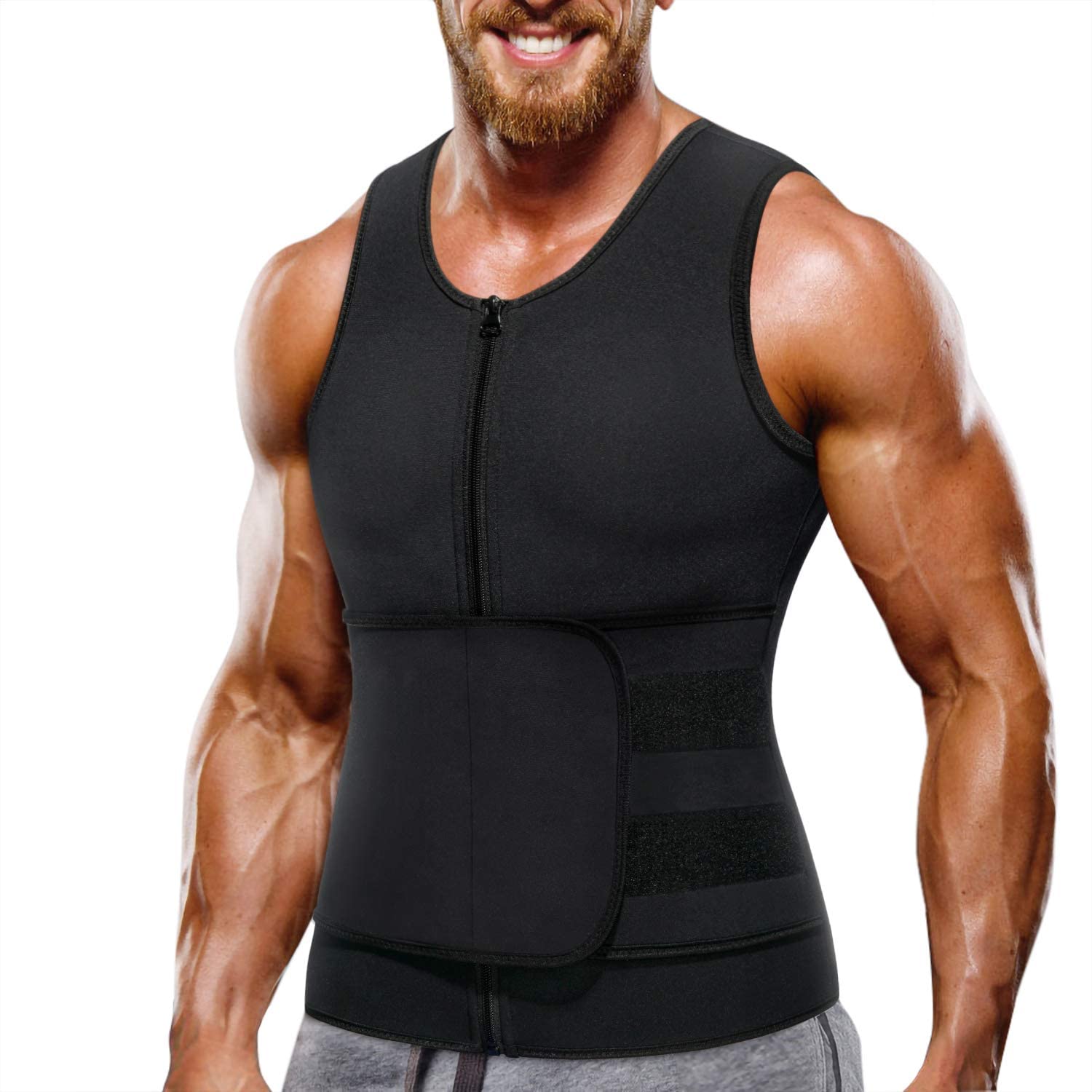 Burn belly fat neoprene waist trainer for men with waist trainer is a full vest model targets your core abdominal area,plus outer adjustable belt that ups your thermogenic energy and flattern abdomen to help you work up an intense sweat and shed pounds more efficiently.