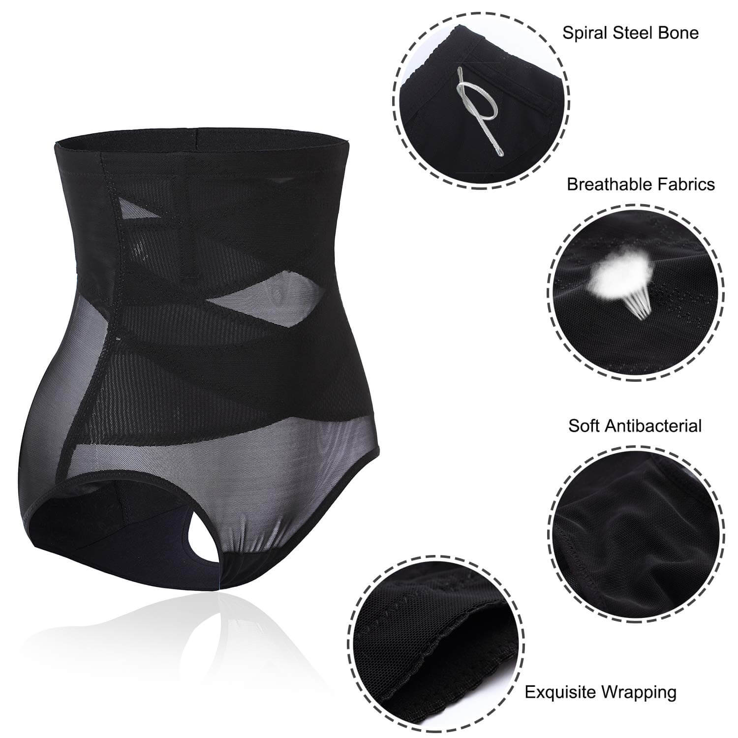 the control panty whole midsection part are 2-layer stretchy fabrics to provide highest compression on belly/waist/back,4 spiral steel bones apart keep it always stay in right place,no roll down and shape you perfectly all the time.